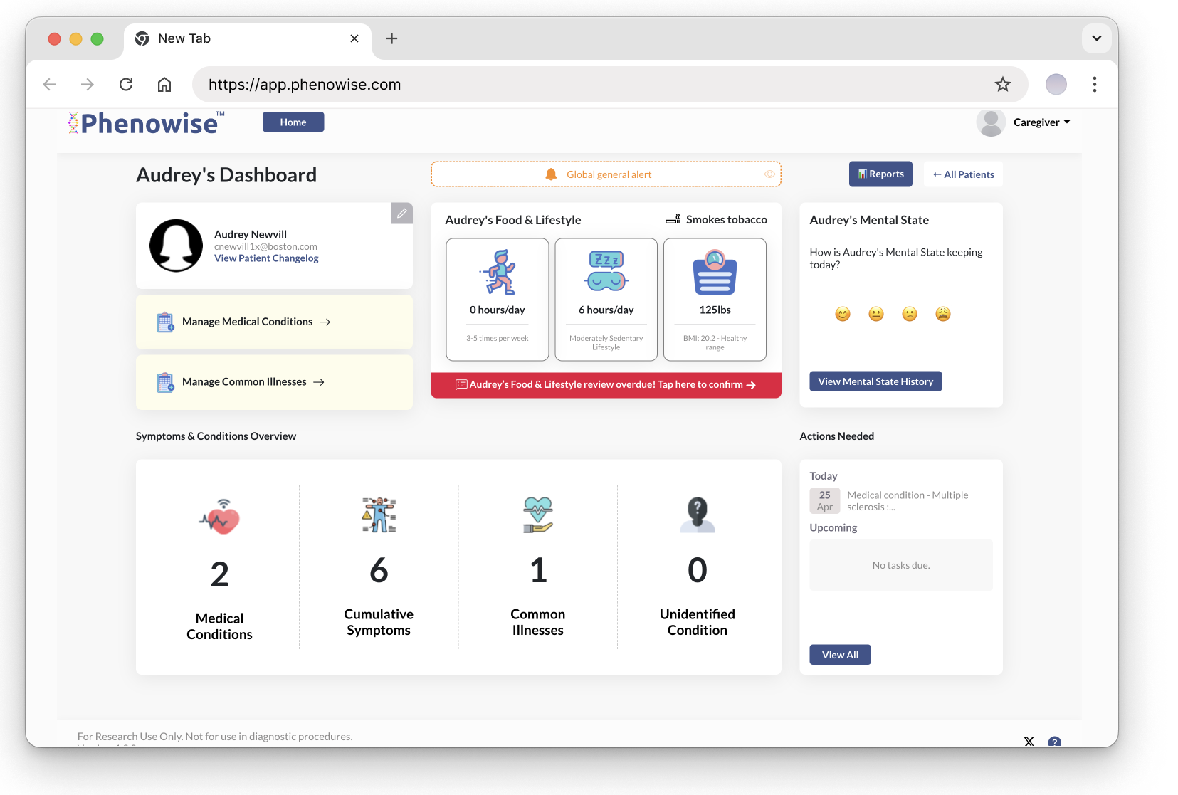A central hub for caregivers and patients, Phenowise offers real-time data and actionable insights for informed, personalized care.